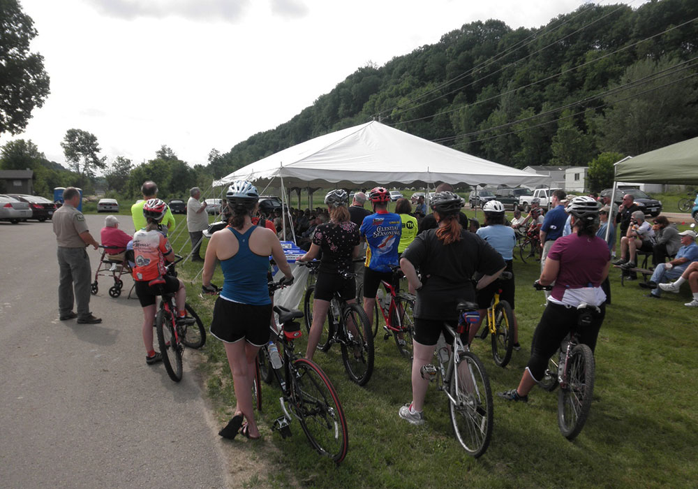 One of the first lessons learned was to encourage more community involvement in the trial. We created a committee of staff, trail users, and the founders of Heritage Trail to plan a week-long celebration of the completion of Heritage Trail — following years of repair from all of the flood damage. The events included birding hikes, a fishing clinic, a bike ride, a frog program, and the ribbon-cutting ceremony for the new pedestrian overpass.