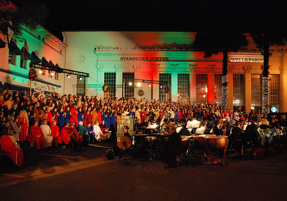 Tree Lighting and Candlelight Choir event in Old Towne Orange Plaza. Photo courtesy City of Orange.