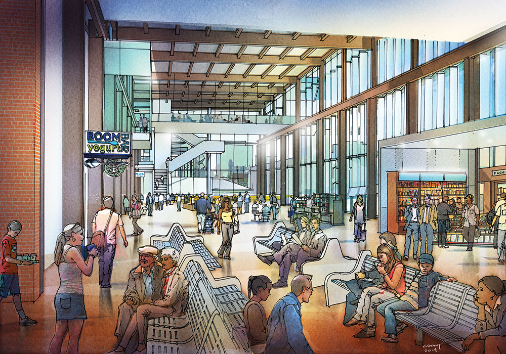 There will also be "top-side improvements to help with traffic flow around the station," Skosey says. A new bus terminal just south of the station will help organize passenger, bus, and pedestrian movements, making traffic more logical and safer, and eliminating the need for pedestrians to have to cross the street to get to the bus, he adds.