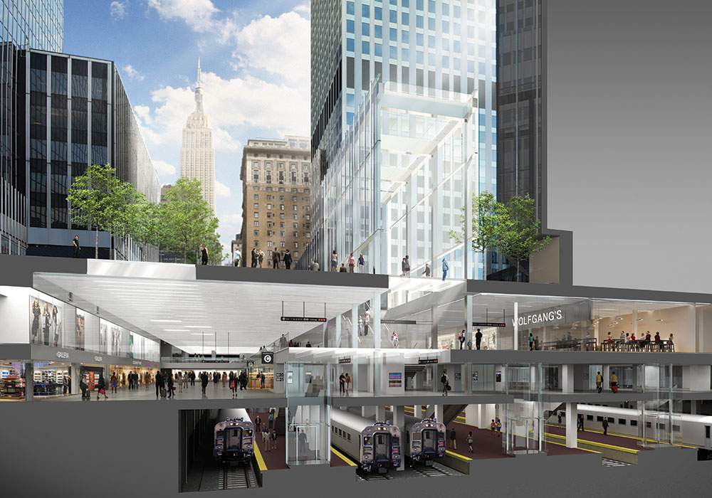A second improvement would be to remove a 5,500-seat theater belonging to Madison Square Garden that sits squarely over the Amtrak Concourse, giving it very low ceilings.