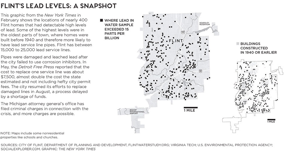 Sources: City of Flint, Department of Planning and Development, Flintwaterstudy.org; Virginia Tech; U.S. Environmental Protection Agency; Socialexplorer.com. Graphic: The New York Times