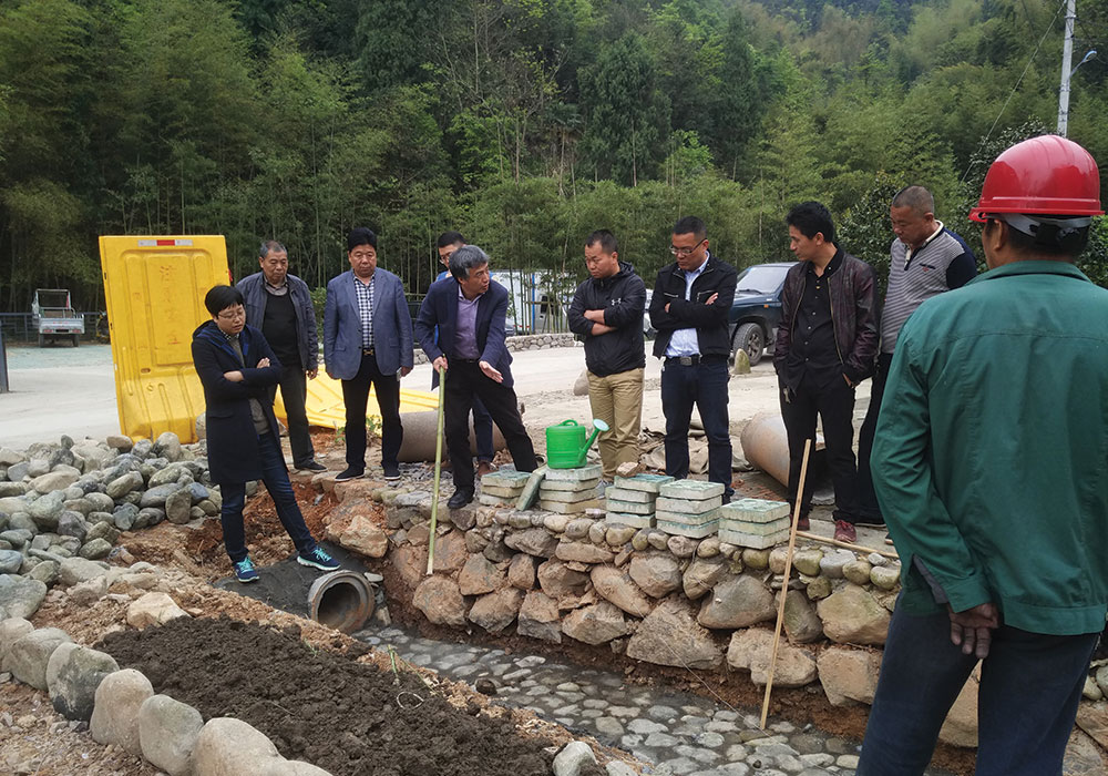 Tongji urban planning professor Guiqing Yang discusses a project with local leaders, villagers, and the construction crew. Photo by Xin Kai.