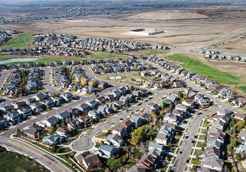 Homes in Erie, Colorado (left), push up against oil and gas development on Colorado's Front Range in the central part of the state. Photo by Evan Anderman.