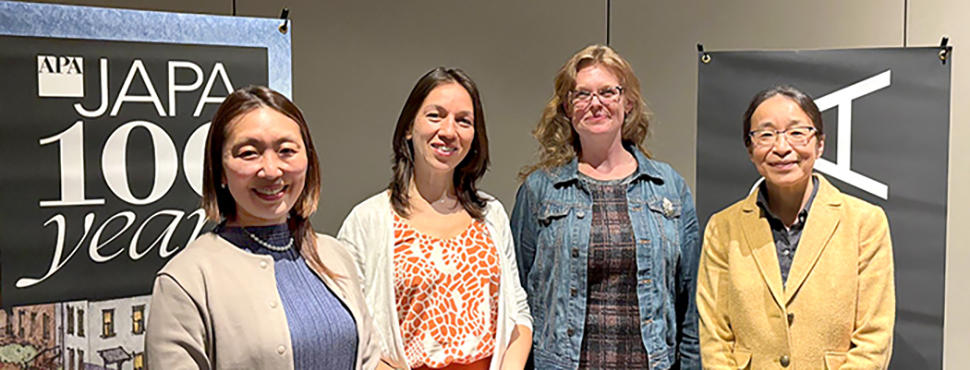 Top image: At the Association of Collegiate Schools of Planning conference in October 2025, Journal of the American Planning Association editor Yan Song (far right) recognized four planning scholars (from left): Kanako Iuchi, Huệ-Tậm Jamme, Tonya Haigh, and Maryam Khojasteh (not pictured). Photo courtesy of Meghan Stromberg.