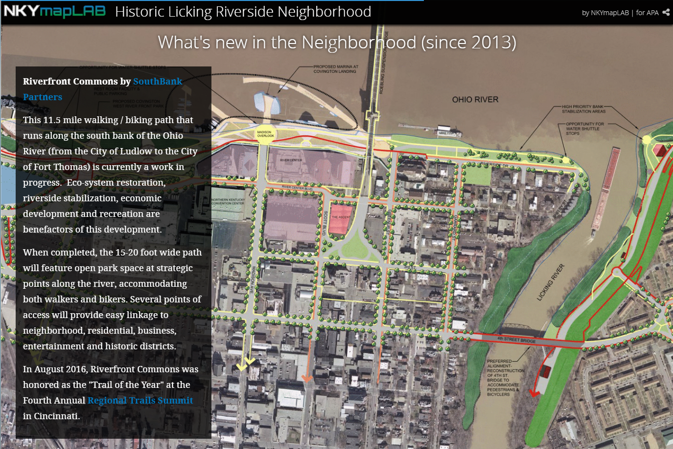 When reporting on the planning developments of such an established neighborhood, a little creativity goes a long way. When Planning and Development Services (PDS) of Kenton County wanted to take a fresh approach to displaying the neighborhood's achievements since its 2013 Great Places designation, they turned to a tool that is gaining traction with planners: story mapping.