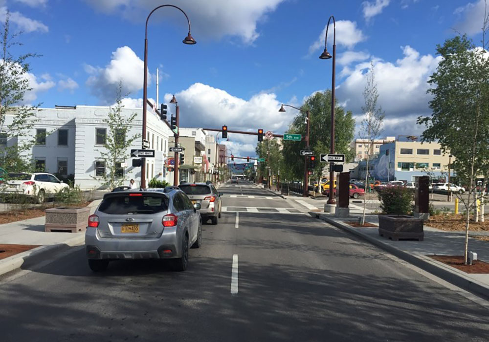 The multi-stage project is the result of extensive effort from the city officials and planners, and local businesses and residents hoping to breathe new life into downtown and welcome the 400,000 visitors that travel to Fairbanks each year. Cushman Street provides an excellent example of how improving streets for people can help to spur economic development in small downtown centers.