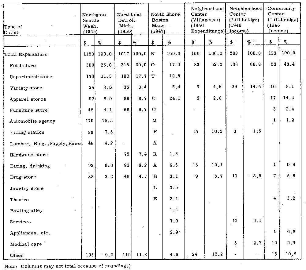 Anyone who tackles the problem of making an economic analysis of a shopping area soon discovers that there are nearly as many methods as there are persons writing on the subject. He will also discover some patently contradictory findings by the writers. Lillibridge,1 for example, estimates the amount of retail floor space needed in a neighborhood center to be 2.9 square feet per person. Villaneuva estimates 37.6 square feet per person.2