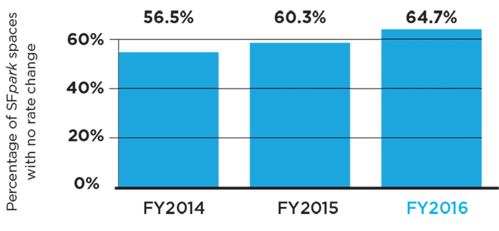 MAKING PROGRESS: The percentage of SFpark spaces that needed no rate change has risen over three years.