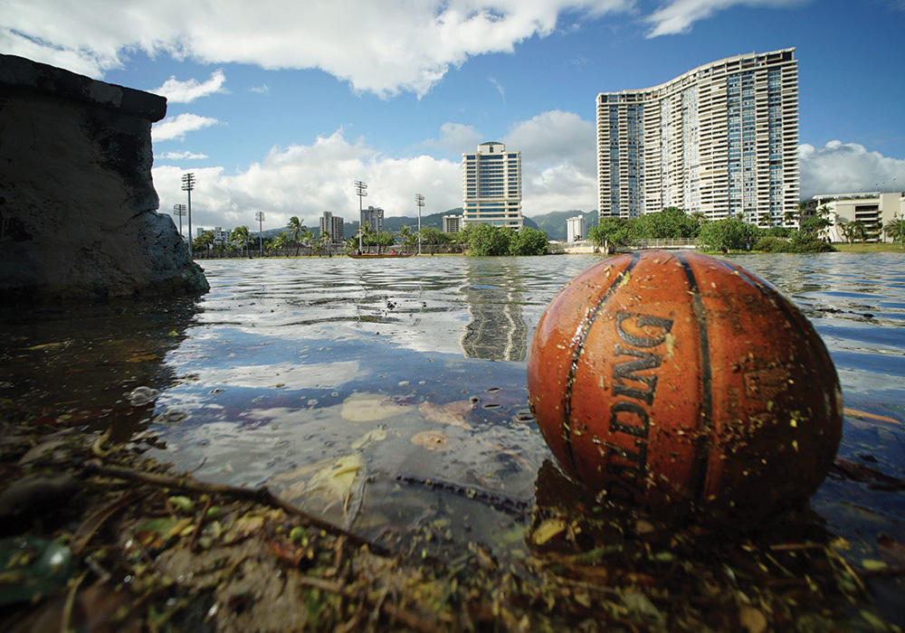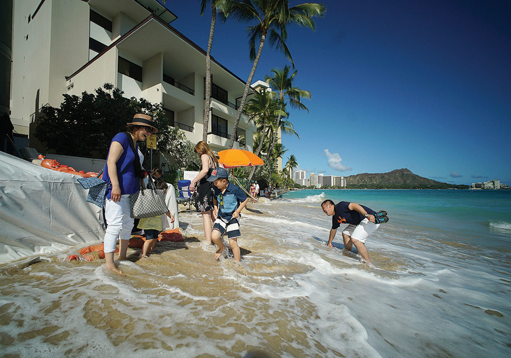 GROUNDWATER INUNDATION. Rising seas mean a rising water table. Groundwater in low-lying coastal plains rests just a few feet below the ground's surface. That water can leech above ground, and even if it doesn't, rising water tables can wreak havoc on underground infrastructure such as electrical lines, sewer systems, and underground pipes. Drinking water wells can also face increased levels of salinity. "When the groundwater table reaches the land's surface, that's a wetland, and you can't have wetlands in the middle of urban areas like Waikiki and downtown Honolulu," says Chip Fletcher, PhD, associate dean for academic affairs and professor of geology and geophysics at the School of Ocean and Earth Science and Technology, University of Hawaii at Manoa. "Obviously, this is going to require an enormous amount of planning, long-term planning as well as, I would argue, short-term planning."