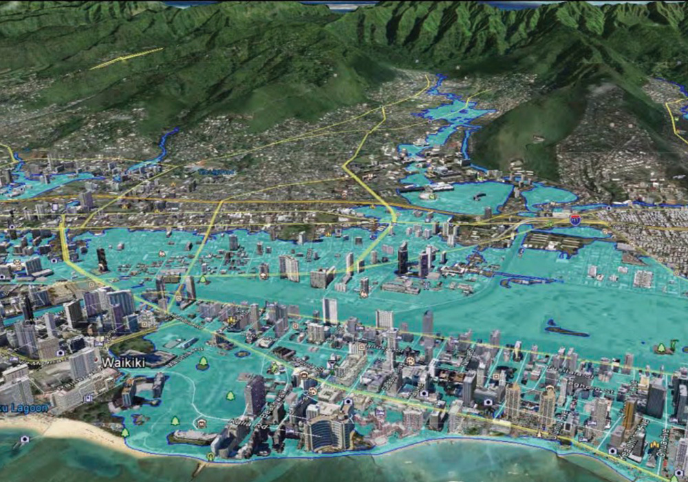It doesn't appear that Hawaii is in quite that degree of peril — yet. But according to researchers, the global mean sea level could rise one foot by mid-century, and 2.5 to 6.2 feet by 2100.