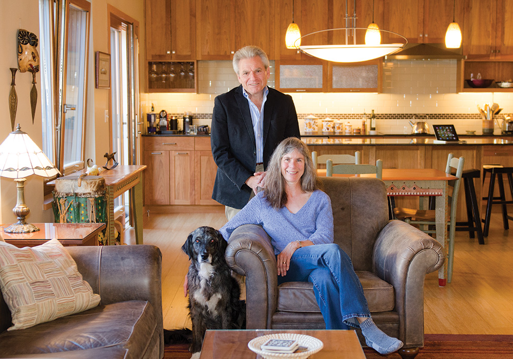 In 2017, Dave Siegel, Lanie Smith, and Kayla the Wonder Dog are right at home in their town house. Photo courtesy Green Hammer.