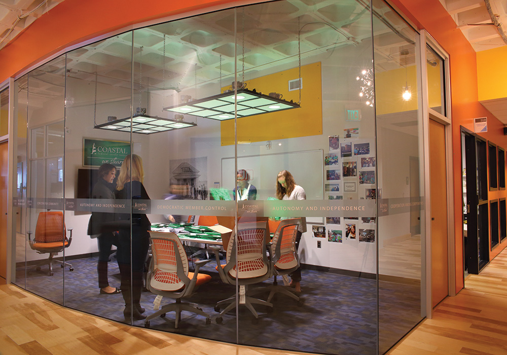 The former bank building's basement vault was turned into a flexible work and meeting space for AU@Main. Photo courtesy American Underground.