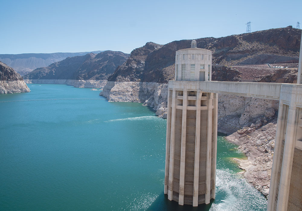 Lake Mead on the Colorado River is at its lowest level since the Hoover Dam was constructed in 1937; this photo is from early July 2018. Lack of snowpack and an ongoing drought caused declining water levels in the river, which serves 40 million people in seven states. Photo courtesy Bureau of Reclamation/Jamel Carry.