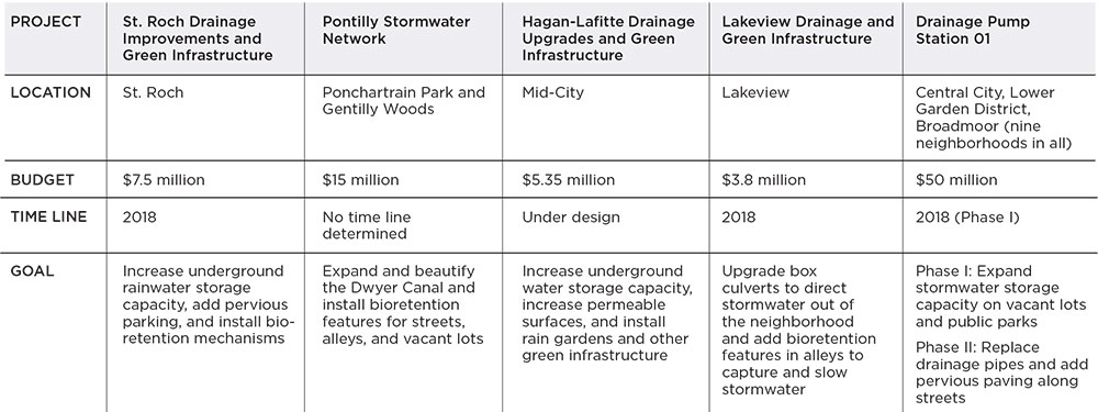Also that year, Landrieu's office unveiled its Resilient New Orleans strategy, which included actions on stormwater management such as implementing water plan projects and developing a program to encourage property owners to reduce flood risk by taking steps like elevating their homes and installing water-mitigation features.